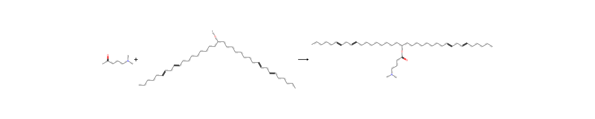 By this reasoning, we realize that the above esterification reaction is not enough to fully specify the synthons. Consider, for instance, two different occurrences of esterification, in the ionizable lipids ALC-0315 and SM-102:
