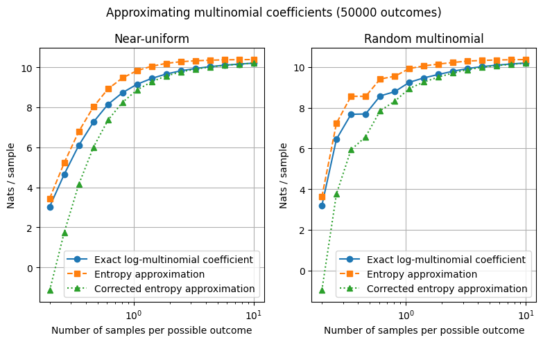 \end{align*}\] We can rewrite the multinomial coefficient using Stirling’s approximation ($ n! = n n - n + (2 n) + (1/n) \().\)\(\begin{align*}