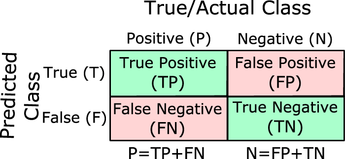 In all the following, we’ll use the familiar confusion matrix for binary classification: